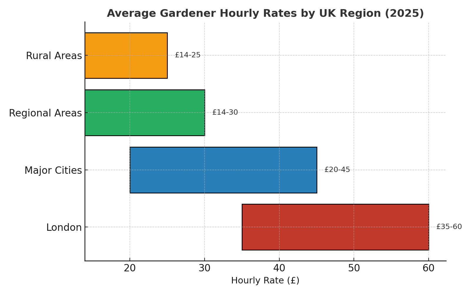 - Experienced gardeners: £25-£40 per hour (5+ years experience)
